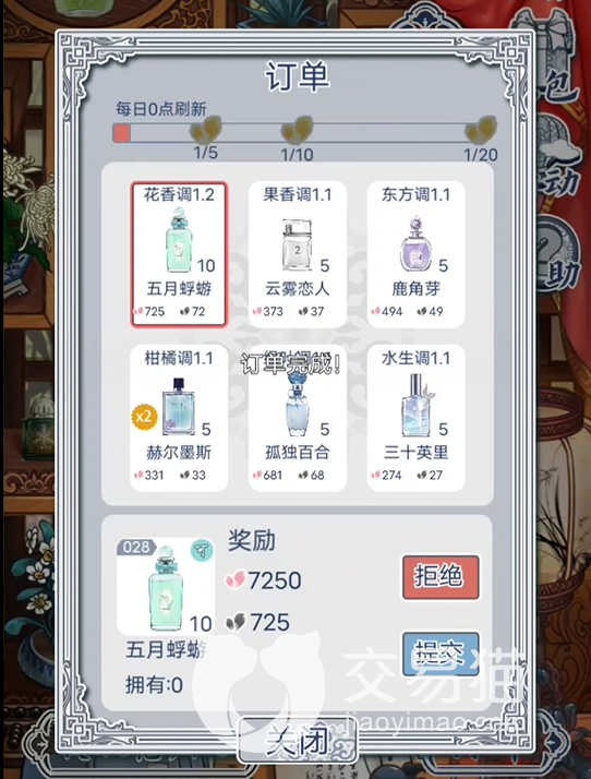 玩家们在《花与香水与猫》这款游戏中进行香水研发的时候拥有相对应的香水配方会让香水研发的成功率更高,有不少小伙伴还不知道花与香水与猫香水研发配方有哪些,今天小编就为各位小伙伴们来详细介绍一下五星高级香水的双调配方详情,有兴趣的小伙伴一定不能错过哦。