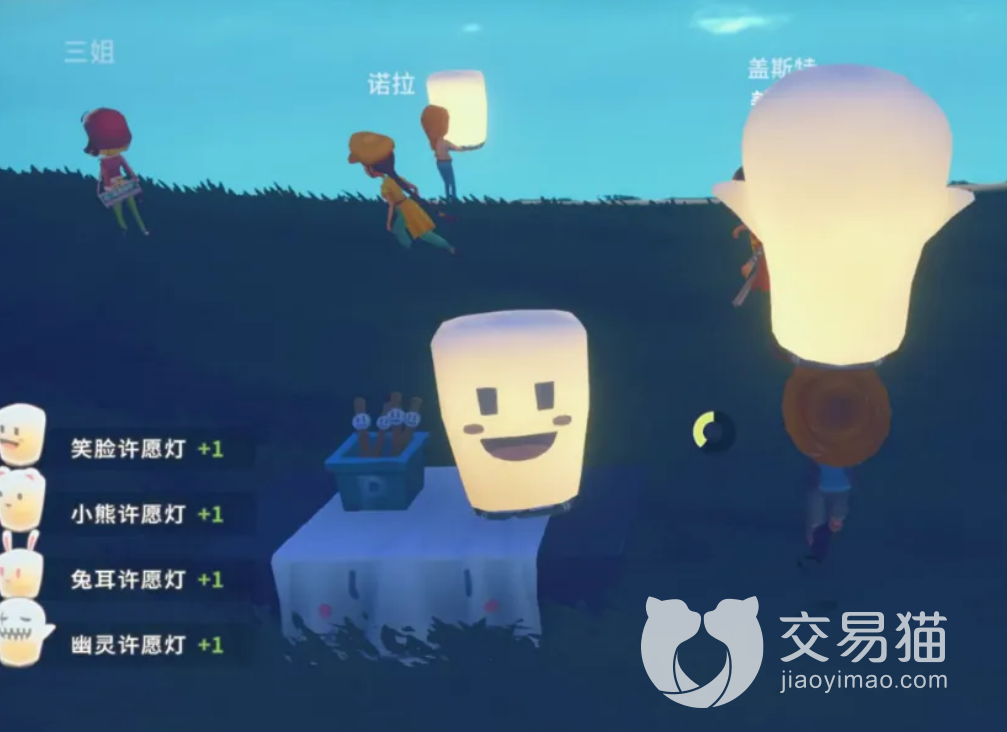 一般大家跟随任务做完以后就可以找到放飞所在地点,到了以后大家就可以直接开始,在河边会有一个桌子,大家过去点击一下就可以获取许愿灯,许愿灯的外形各式各样,但是看起来就会像透明的一样,有笑脸许愿灯、小丑许愿灯、兔耳许愿灯和幽灵许愿灯等等,大家点击许愿灯就可以将灯放上天空。