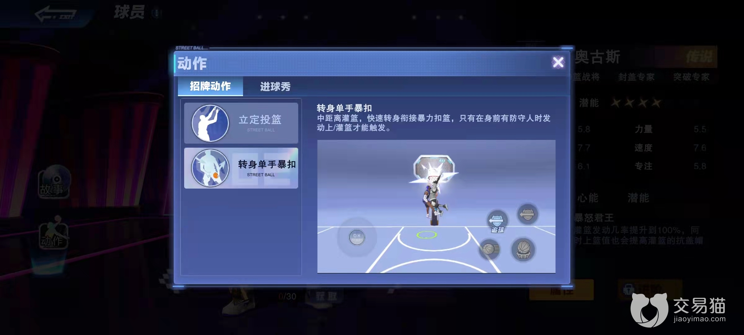 另外在动作上,他还有着专属的转身单手暴扣,这个动作,只要你来到禁区附近,哪怕前方有防守人也是可以直接触发的,触发后,会直接抹过防守人进去扣篮,可以说十分的帅气了。