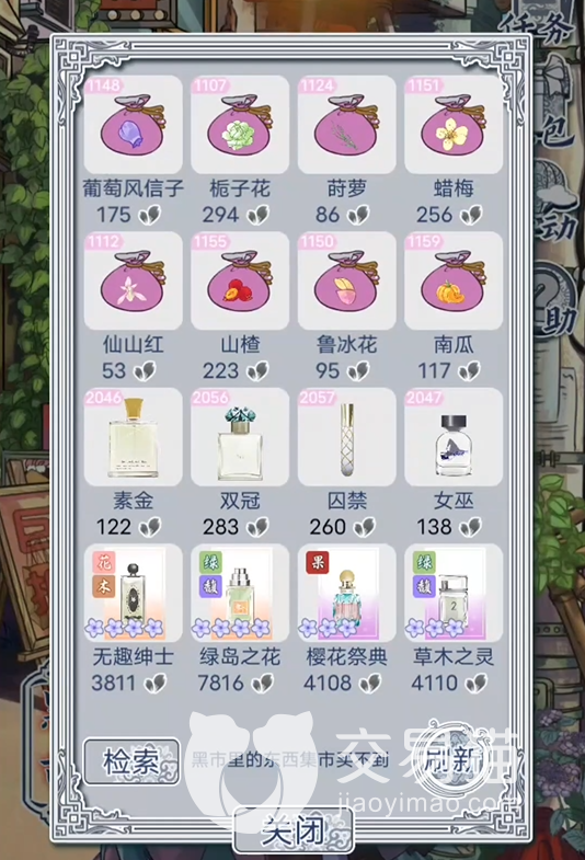 《花与香水与猫》这款游戏中玩家们的主要玩法就是研制香水,但是很多小伙伴不清楚香水的详细配方,今天小编就为各位小伙伴带来了花与香水与猫香水大全,为各位小伙伴们详细介绍游戏中的各种香水,有需要的小伙伴赶紧来看看吧。