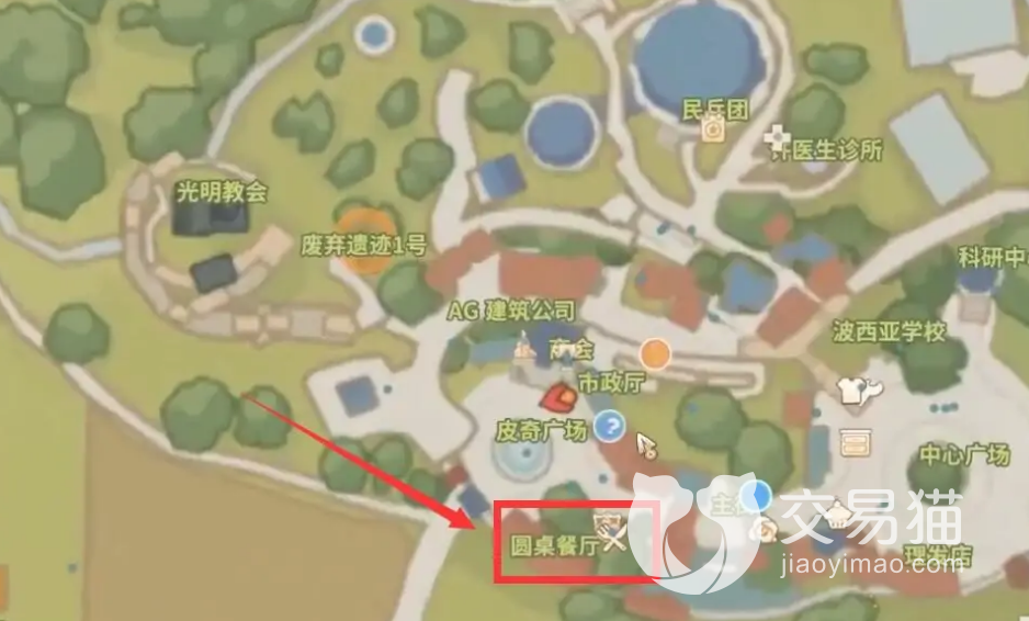 玩家在地图主页面中就可以看见圆桌餐厅就在地图的下方,大家可以打开地图,找到圆桌餐厅,根据方向移动到圆桌餐厅,进入圆桌餐厅大家就可以看见站在桌子旁边的索尼娅,在索尼娅旁边,大家就可以点击进入运动餐厅,上面会有一个叉子跟勺子的图标。