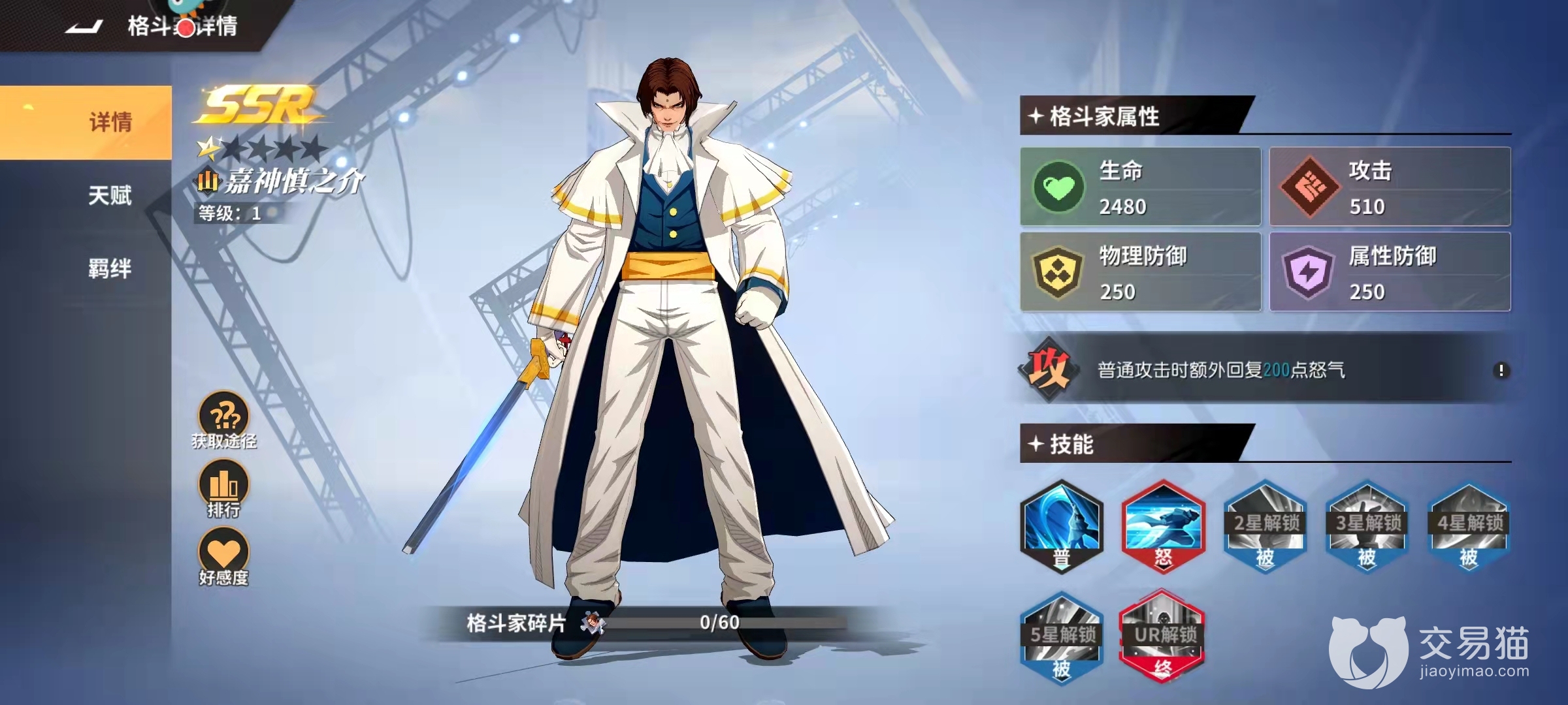 先给大家说一下阵容给的整体配置:嘉神慎之介+ 千两狂死郎 + 李烈火 + 炎之宿命克里斯 + 镇元斋+ 天草四郎时贞。