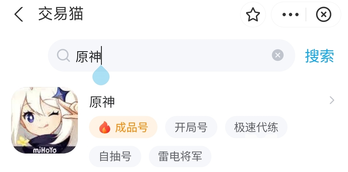 买家想要购买原神账号,可以直接下载交易猫,然后搜索原神,就可以在下方点击进入原神的专区,在专区中进行商品的查询。