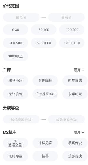 2.方便的筛选功能,轻松定位想要的账号。为了让买家找号的时候,可以少花一些时间,平台专门设计了一个筛选功能,其中将账号内可能包含的物品,做了一个列表,用户只需进行选择,接着再搜索,就可以直接找到自己要的账号了。