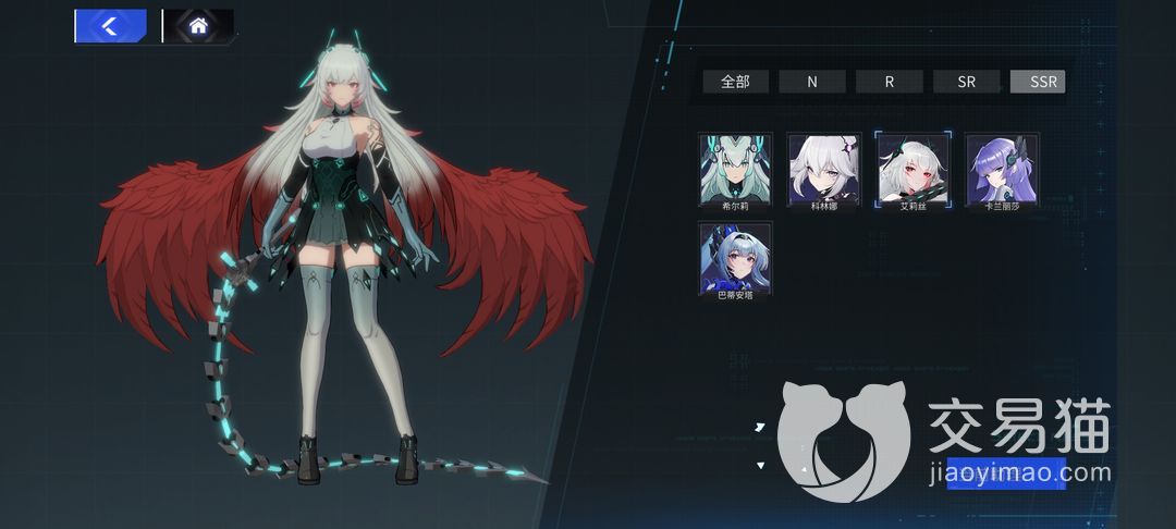 艾莉丝,又是个白毛红瞳的冲国人特攻角色,背后有一对类似天使的红色翅膀,手持鞭状的伸缩剑,可以进行近距离以及中距离的战斗,输出也是不俗,作为ssr角色不管是模型还是强度都是在线的。