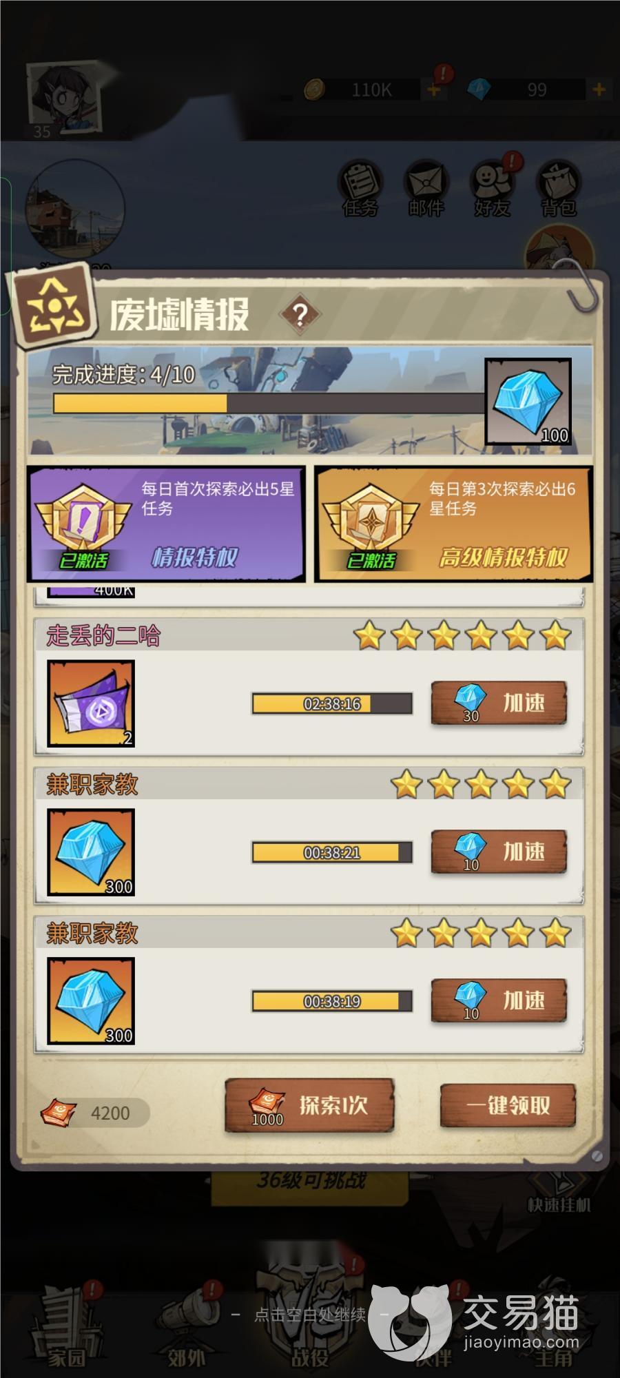 最后获取了特权之后,玩家废墟情报的任务也会越来越多,在这里玩家可以通过委托伙伴获取超多的稀有奖励所以说是非常的重要的。