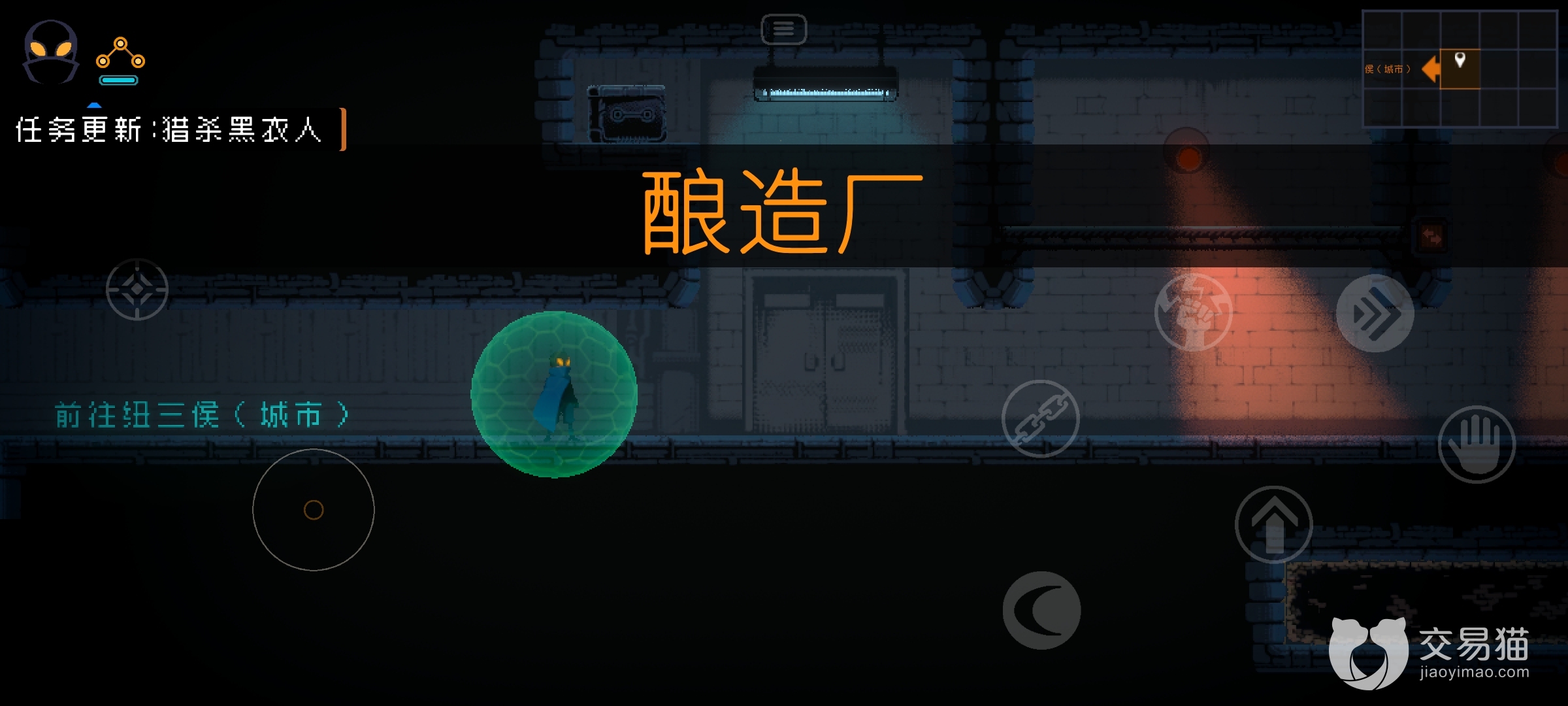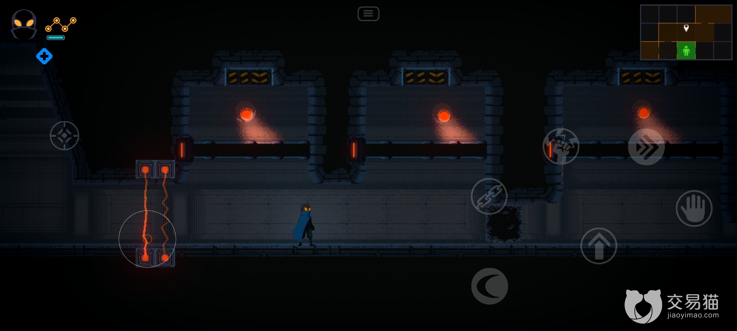 酿酒厂这里如上面所说的这个关卡的特色就是红色光线的大眼珠子,被光扫到除了有障碍物阻挡会直接秒杀玩家,这个时候限时的机关门是玩家常常使用的阻挡这类怪物的方法,当然需要玩家使用锁链然后快速移动,我们一直往右边走顺便解锁洗手间,可以方便传送和存档,这里最难的就是右边的四个连续的侦查眼了,无论使用多快的移速都会被它们发现这个时候需要在左边和上方的地图上找到四个红色的开关,互动之后就会注意关闭侦查眼的房间让玩家顺利的过去。