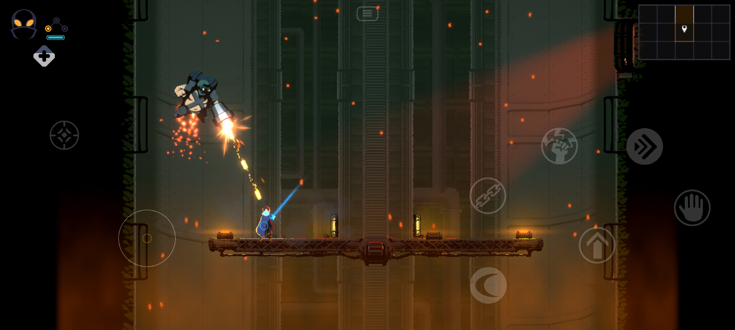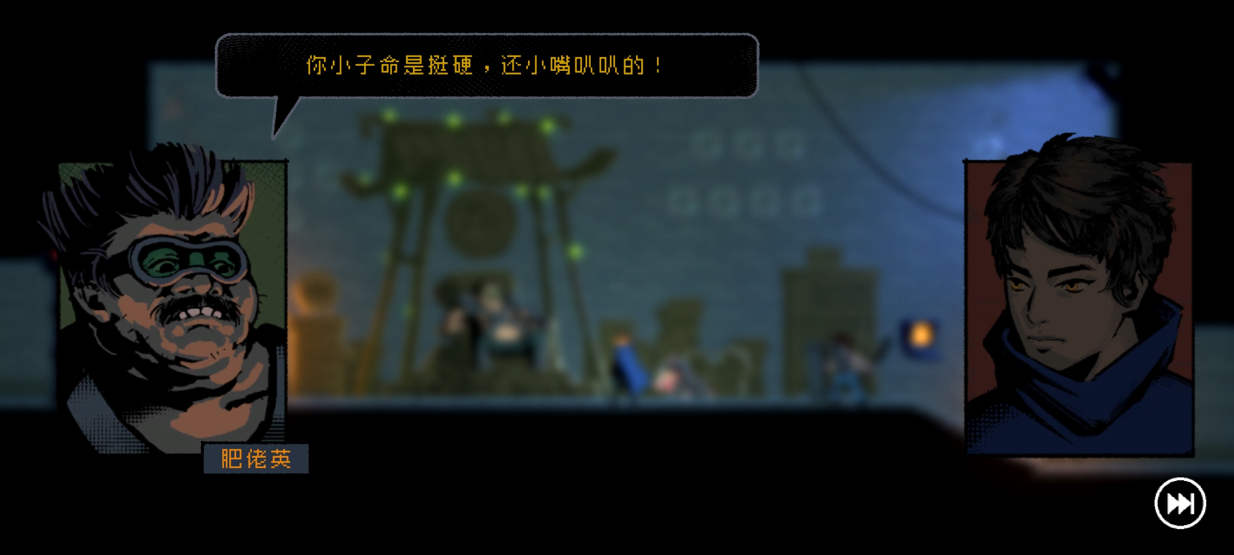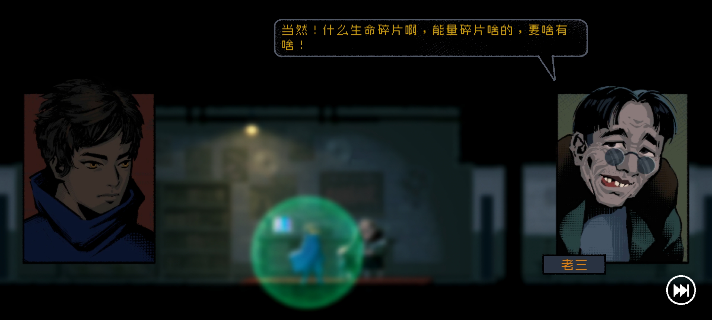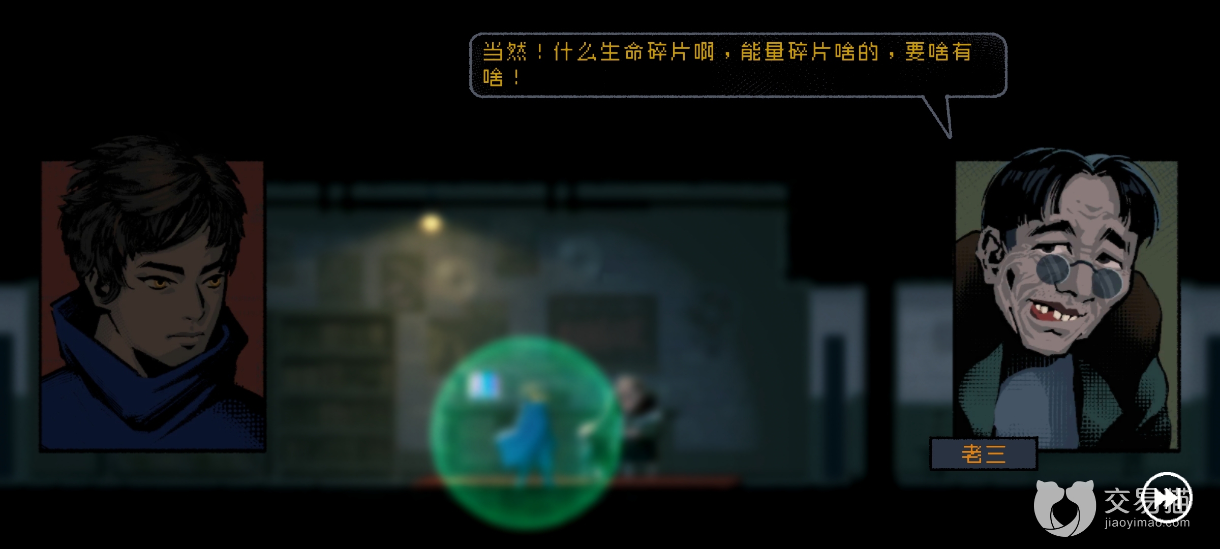 在主角的必经之处肥佬英全副武装化身重装飞天战士拦截玩家,这里建议玩家先到废墟拿到气刃以及在本地图上找到连续反弹再战斗,不然就算是菜币也解救不了玩家,会浪费很多时间,它的火焰弹和平台障碍在玩家血量非常低的时候非常容易秒杀玩家,击败他之后就可以回到纽三候这里会有人知道鼹鼠帮被主角一锅端了的消息,然后玩家就能看到老三音响厅了,在这里玩家可以和老三进行交易,将自己获取的光盘和老三兑换奖励之后他会打开右边的门,玩家进去之后可以看到许多的奖励,不过都是被门给锁住了,给的光盘越多玩家能够获取的奖励也就越多,这是除了通宝购买道具之外最快提升战斗能力的方法。