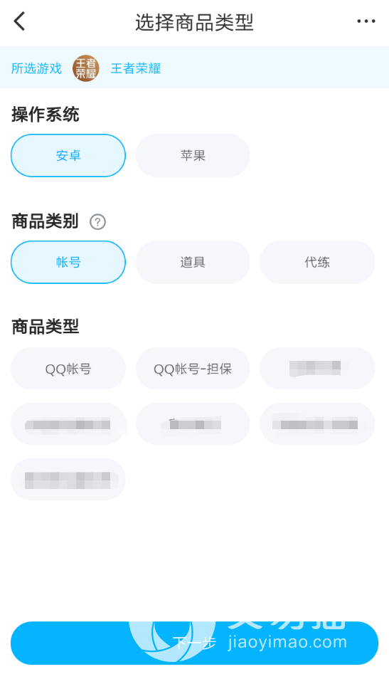 2、当然,玩家们想要快速完成账号交易的话,首先就需要去发布自己的游戏商品。大家进入到平台内的商品发布页之中,选择好账号支持的操作系统以及商品类型,同时针对游戏号内所包含的英雄角色数量进行描述即可。