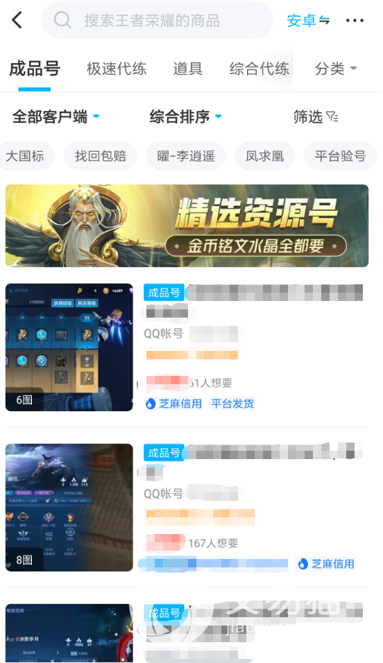 1、玩家们的商品主要出现在王者荣耀的交易专区当中,此时买家将在浏览商品的时候发现各位发布的交易信息,如果是qq账号的话,在交易商品的信息栏当中将会直接展现出来,方便其他买家快速的来进行不同账号类型的区分。