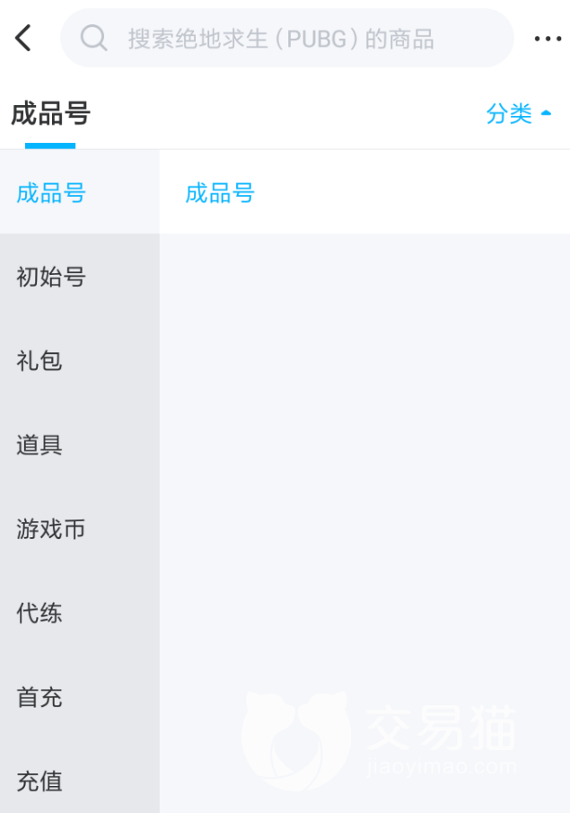 2、当然专区当中不仅仅只包含了成品号一类型的游戏商品,玩家还可以直接使用分类功能来筛选出其他类型的交易信息,这其中将包括价格更加便宜的初始号,非常适合喜欢挑战的一类玩家进行购买,同时游戏当中的各种道具也有单独的分类选项。