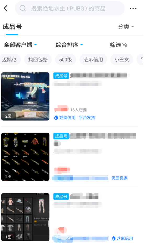 1、目前的交易猫app内不仅开放了针对PUBG的交易专区,玩家还可以直接在其中筛选出大量包含了各类武器道具的成品号,这些成品号也将为大家带来不错的游戏体验。各位在选择商品的时候,尽量从商品信息以及价格来进行了解。