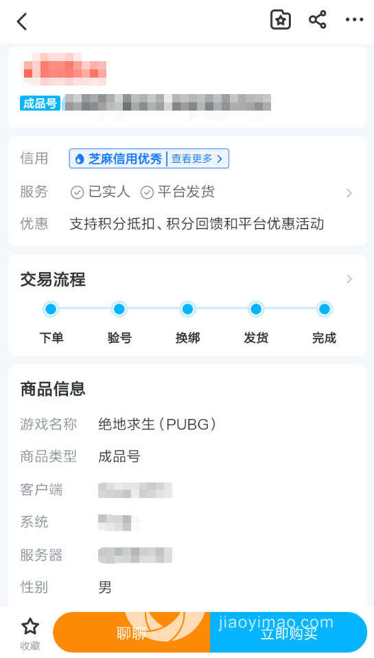 3、如果发现了自己非常感兴趣的商品,此时各位就可以在详情页面当中了解到更多的内容,其中最重要的则是商品支持的交易流程,玩家将根据严格的流程步骤完成最终的购买,同时平台客服也会在期间介入交易来提高安全性。