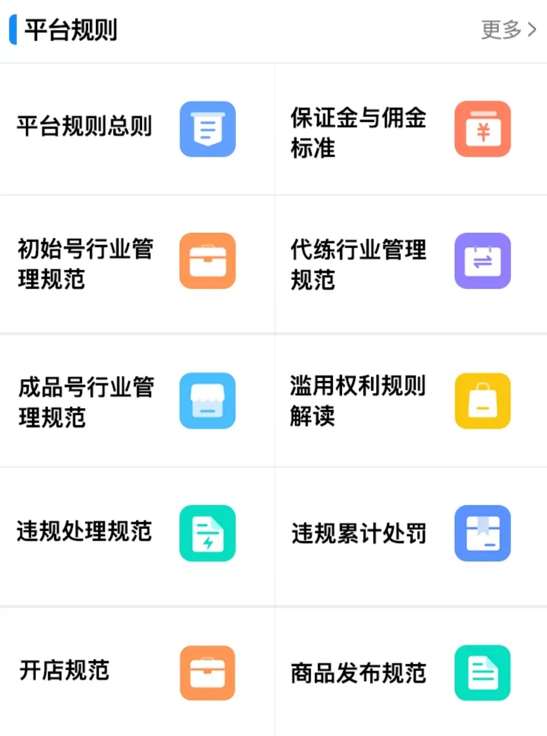 一个平台是否正规,从规章制度的细分程度就可见一斑。交易猫平台的规章制度非常细化,包括商品发布规范、初始号规范、成品号规范等等诸多细则。正是有了这些规则,才将原先较为松散的游戏交易变得更加正规且可信。随着信誉度的积累,产生出来的优质商户才形成了如今交易猫平台完善的交易环境。