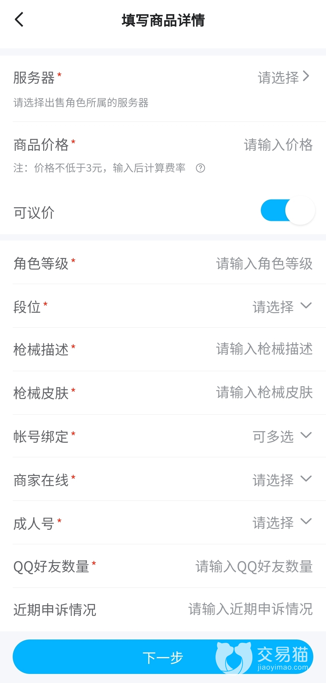 想要账号被人买,首先要定价合理,再有商品简介要吸引人,把账号特色用简短的话说清楚,如果不太知道怎么写的朋友,平台也贴心为你规划了必填项,在账号出售前,你只须按照要求填好空缺即可。