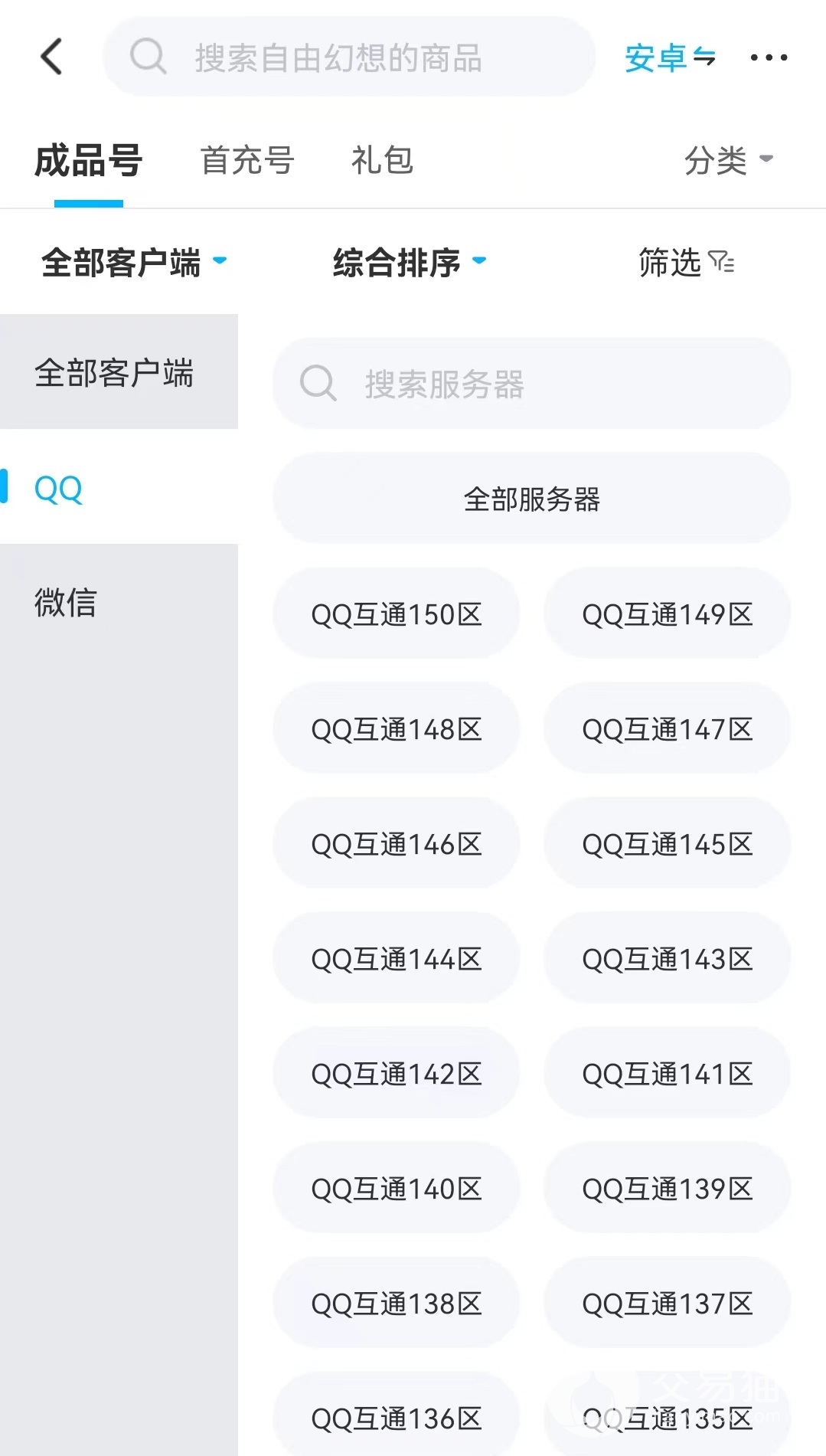 在这里为QQ客户端设置了专门的区域,只需要在专区中找到客户端选项,在其中就能看到有QQ和微信两大类型。在QQ中所有互通服务器全部在列,可以选择其自己需要的任意一个也可以全部选中,接下来所找出的就是全部符合要求的内容。在出售的时候也同样如此,在界面中有全部商品类型在其中选择QQ账号,接下来按照要求逐项填写就能成功上架,此时买家只要搜索对应客户端就可以找到。