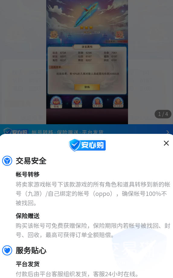 三、账号转移,百分百安全。在交易猫平台上面选择进九游客户端,购买九游的想不想修真手游账号可以享受特色账号转移功能,将卖家想不想修真游戏账号的所有角色与道具转移到新的账号或者自己绑定的账号,确保账号百分百不会被找回。