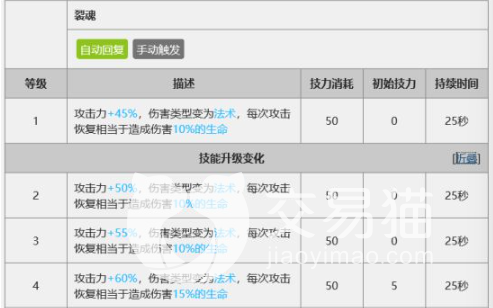裂魂:能够让攻击力提升55%,同时将伤害转化成为魔法伤害。