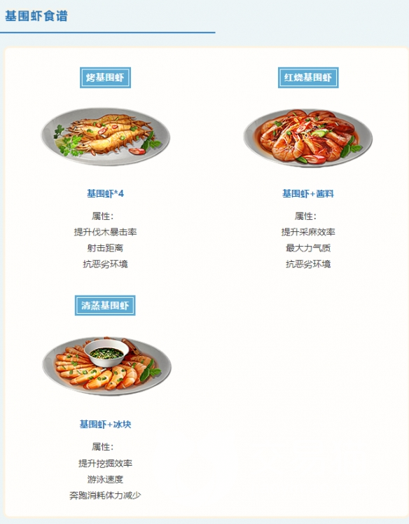 海洋食谱也是和上面的新食谱一样,都是比较全能的增幅,玩家们只需要找到自己想要提升的属性来制作即可。
