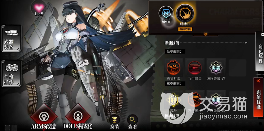 这个角色主要是空战和制空厉害,她的一技能可以从低空对高空射击,并且能提升自己的存在感,二技能则是提供一个低空的警戒效果,三技能则是高空射击,并且还能降低敌人的存在感和命中。此外,她还有着提升自身机动性与暴击的专属技能。