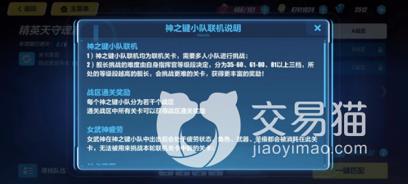 联机玩法主要是用来副本挑战的,在进行选择的时候,会针对玩家的等级来划分副本的难度和队伍的等级需求,随着玩家角色等级的提升,副本奖励的内容会越高,同时难度也会越高,所以对组队的需求就会比较大了,一般情况下建议玩家与好友一起组队刷,越默契通关难度越低。