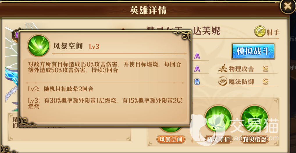 最后的希瓦娜是阵中的核心输出,她可以对敌人防御最低目标进行有效打击,还能给敌人施加群体的灼烧效果。