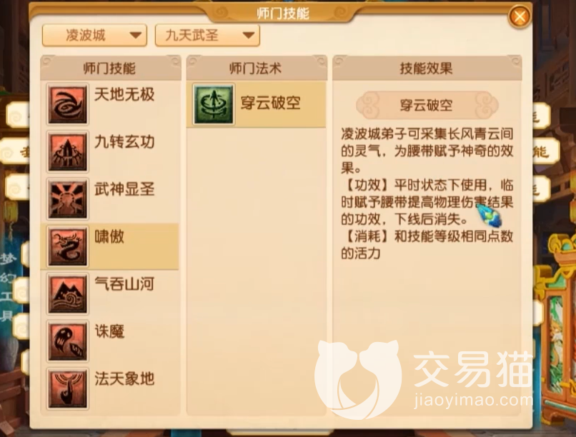它会提供一个叫“穿云破空”的技能,技能开启后,本次登录全程有效,效果为让你的腰带获得攻击提升的增益。