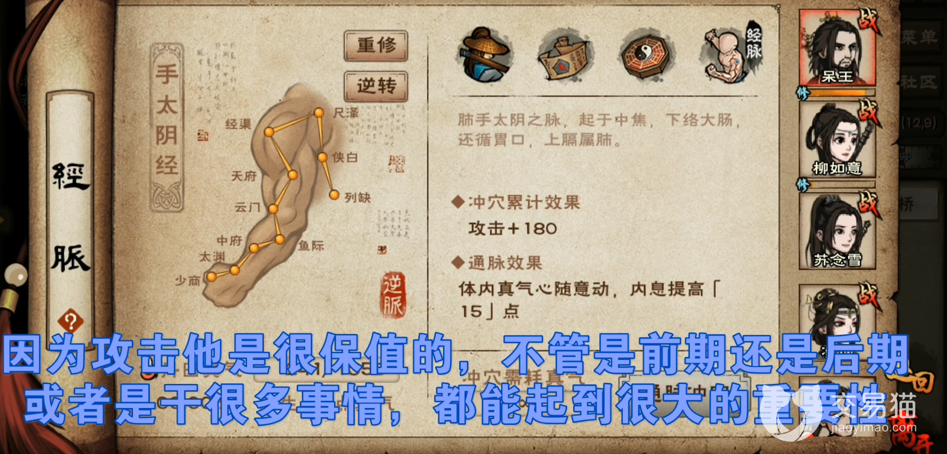 最后就是经脉了,这个小编玩家主点攻击,因为在一个需要战斗的游戏里来说,攻击是十分重要的,不管是前期还是后期,都可以用的上。