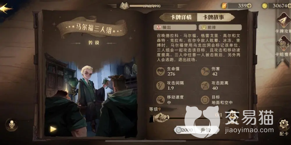 马尔福三人组:在使用该卡牌的时候,可以召唤出三人组合,并且三人都会攻击统一目标。