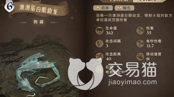 澳洲蛋白眼幼龙:使用该卡的时候可以对敌方单位造成持续范围性的火焰伤害。
