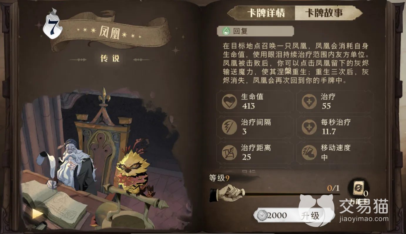 凤凰:玩家们在战斗中使用该卡牌的时候会在目标地点召唤出一只凤凰,该凤凰会消耗自身的生命值对范围内的友方单位进行持续恢复,当凤凰生命值归零之后可以点击灰烬让凤凰进行重生,最多可以重生三次。