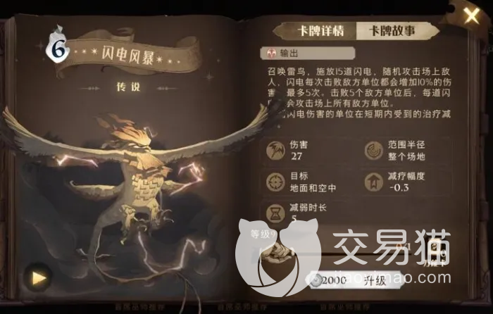 闪电风暴:使用该卡牌的时候可以召唤出闪电对场上的敌方单位造成随机伤害,当闪电叠满之后就会攻击所有的地方单位。