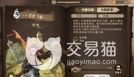 金色飞贼:使用该卡就可以召唤出一只金色飞贼,每秒都可以为玩家提供一定的魔力回复,和一张移动卡,当被抓获的时候就可以给玩家提供三张移动卡和魔力值。
