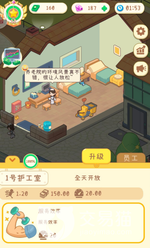 所以玩家需要保证好居民的幸福感,这样才能够获取资金来升级养老院结果更多的地盘,这样居民的幸福感也会慢慢升高的。