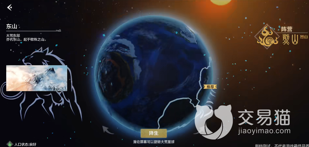 捏完脸后,还需要选择降生的地点,不同地点中分布的天灵地宝与异兽都是不一样的,不过开局的话都会有一个精灵式的人物引导你前行。