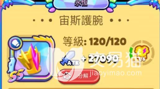 而宙斯之戒虽然对角色本体没有直接的提升,但一旦受到伤害却能形成一个增伤的作用效果,放在和boss最终胜负对战里还是蛮好用的的一件装备,宙斯护腕与戒指相比增益效果是就变得更加显著了。