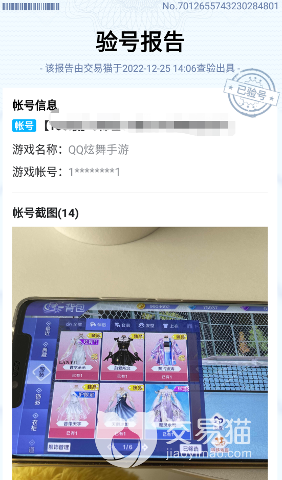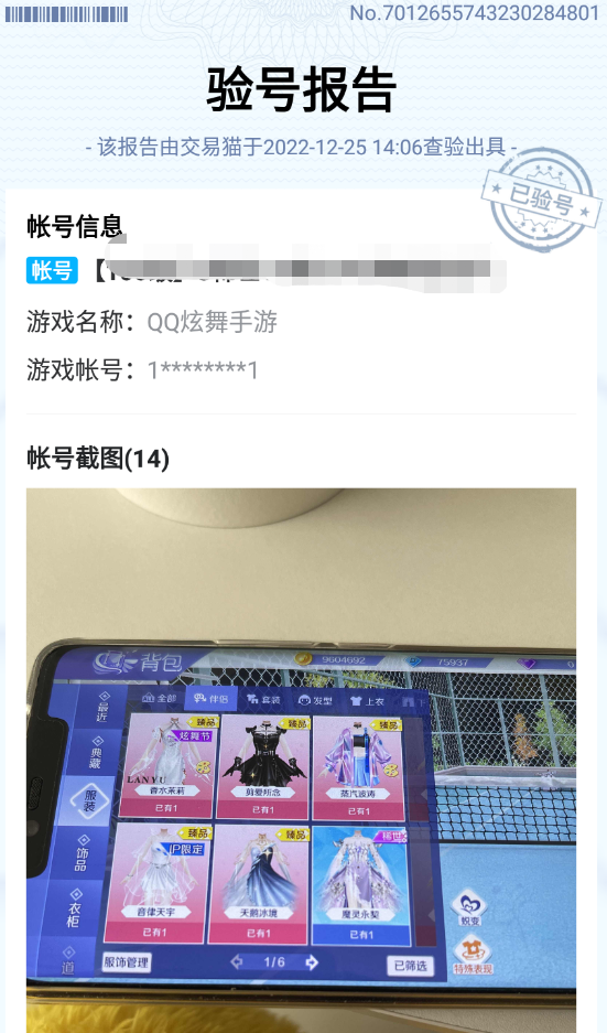 三、交易安全可靠。交易猫上买QQ炫舞账号有安心购保险,在保险期内,如果买回来的号被找回或封禁,向客服申诉最高可以获得订单全额赔款。同时平台还有芝麻信用分高的优质卖家,口碑好,交易账户之前可以查看卖家提供的QQ炫舞游戏截图,下单后还能要求客服进行临时的二次验号,双重保障买号更加放心。
