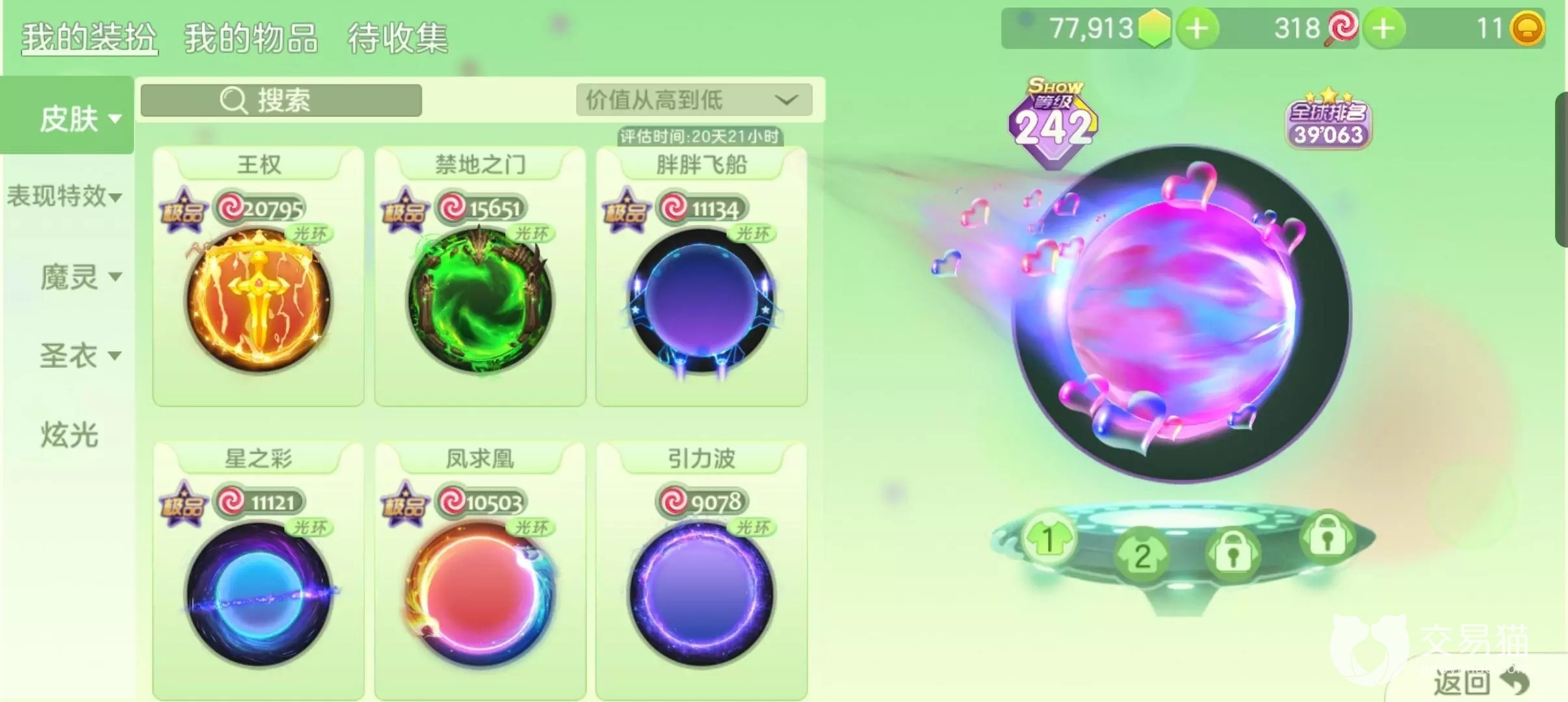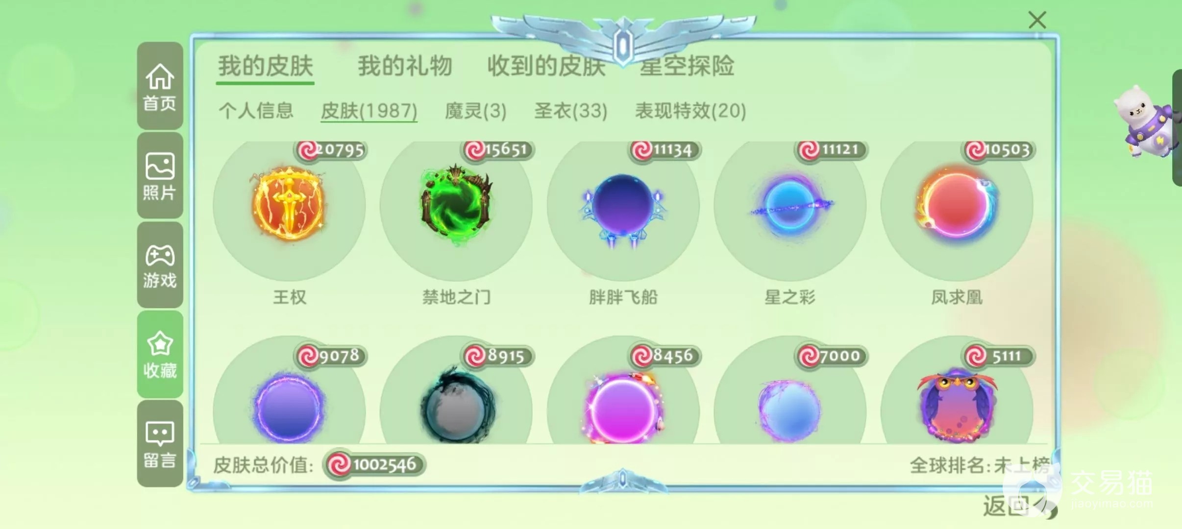交易猫也考虑到大家在选购账号商品的时候,其实大多情况下还是很浪费时间的,所以操作较为简洁的界面以及多个专区划分可以让大家更快更精准的定位到符合要求的账号,点击双屏信息就能查看到商家对自己账号所描述的皮肤总价值以及类似于金箍棒、先知无极还有满级西瓜姑娘这种圣衣的信息,更方便对比的同时也能够让买家判断出商家的标价是否符合账号的总价值。