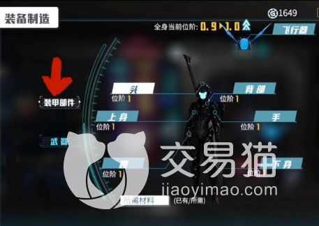 我们进来以后是可以看到六个部件的,这就是组成外观的部件,我们点击不同的部位,比如头部,就可以看到右边的面板上会有相应的装备,并且还会有推荐,实在不知道用哪种的玩家就可以按照这个推荐来制作。