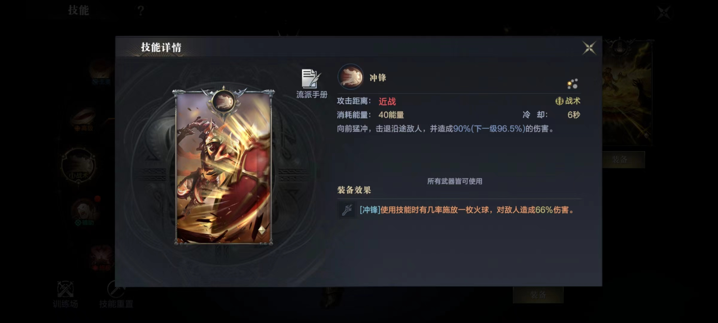 战术技能建议选择冲锋,这一效果也是战士的标志性动作,向前方命猛冲可以将沿途遇到的敌人击退,到达目的地时还将附加伤害,也是战士为数不多的位移技能。无论是PK中先手进攻还是副本中直接开怪都有很好的发挥。辅助技能则需要根据实战情况来选择,威慑可以挑衅敌人强制攻击自身,并且受到的伤害降低,适合防御型战士选择,圣盾防御激活后直接降低受到的所有伤害,万金油搭配,鼓舞则是发动战吼提高自己和周围队友的伤害输出,属于输出型战士的首选。