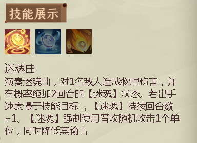 失魂曲会给对手施加“失魂”也就是平常MOBA中的缴械效果,不能进行攻击和技能,并且还会持续丢失生命值,这会让敌人变得很难受,可以说是一个神技。