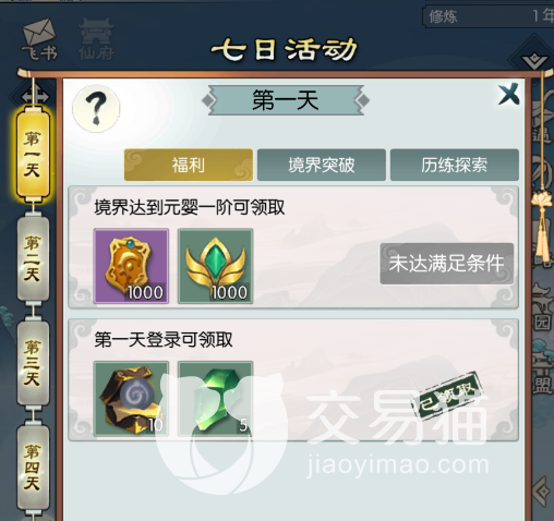 然后刚入坑的玩家,最好是挑新区进,因为会有新区的专属活动,这些活动的奖励也很多,是玩家获得游戏资源的好时机,比如游戏内的“七日活动”,每完成一项都可以获得一些奖励,并且获得一点积分,等达到积分以后还会赠送一个道侣。