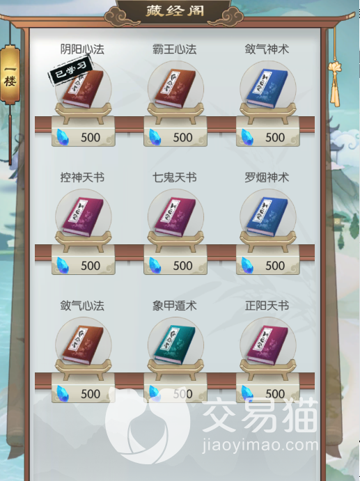 游戏内还会有很多心法可以当玩家进行购买,首先我们要回到主界面,然后在左下方会有一个“坊市”,玩家进去以后右上角就可以看到“藏经阁”,点进去就可以购买心法了,这些心法会有不同的效果增强,玩家可以根据需求来进行选择。