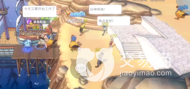 油菜花左边有个码头,那边有个运货工人,可以问出一个任务出来,帮他找出三个货物。