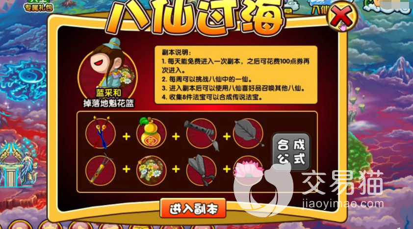 这些物品的获取都不容易,通过常规的刷副本方法,需要投入的时间会比较长,但也有其他方法能够快速获得,那就是去挑战八仙过海,当然,这个玩法每天只能免费进入一次,之后再想进去就得消费点券了。