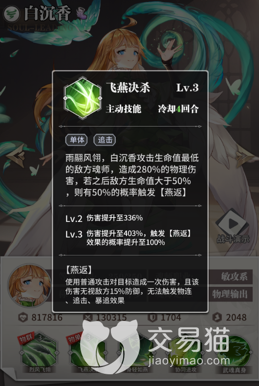 另外阵中的收割人选也是有的,白沉香会锁定敌人生命最低的目标造成巨额单体伤害,从而保证敌人残血C位的死亡。