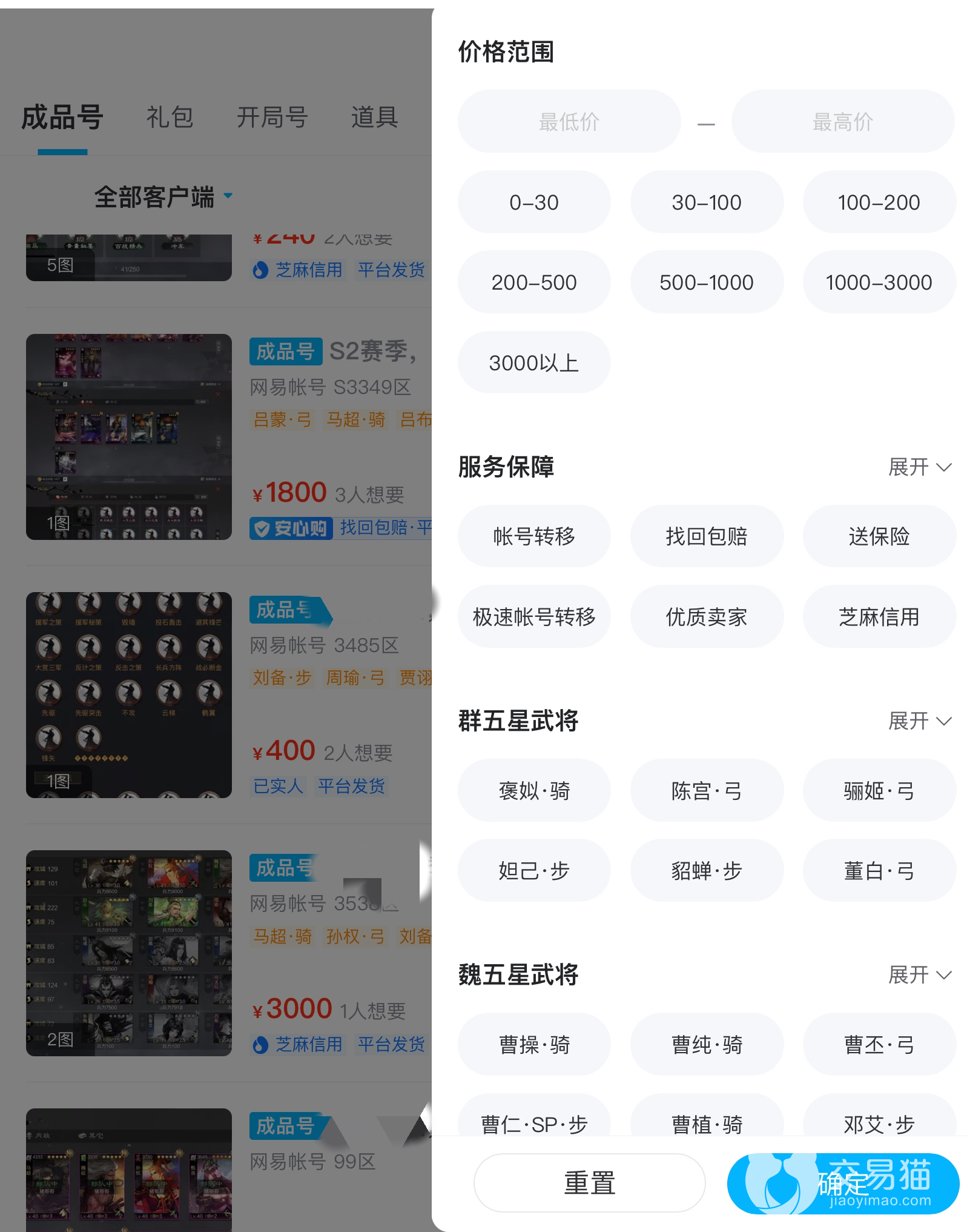 在交易猫平台中更让各位满意的绝对是不同类型的游戏账号需求,有极品宝物,广阔城池,高等级的成品号,也有特殊资源宝物,满足个人需求的资源号,还有等待玩家自己去开启征程的开局号,可以说只要玩家的账号可以比较轻松地找到契合的买家。