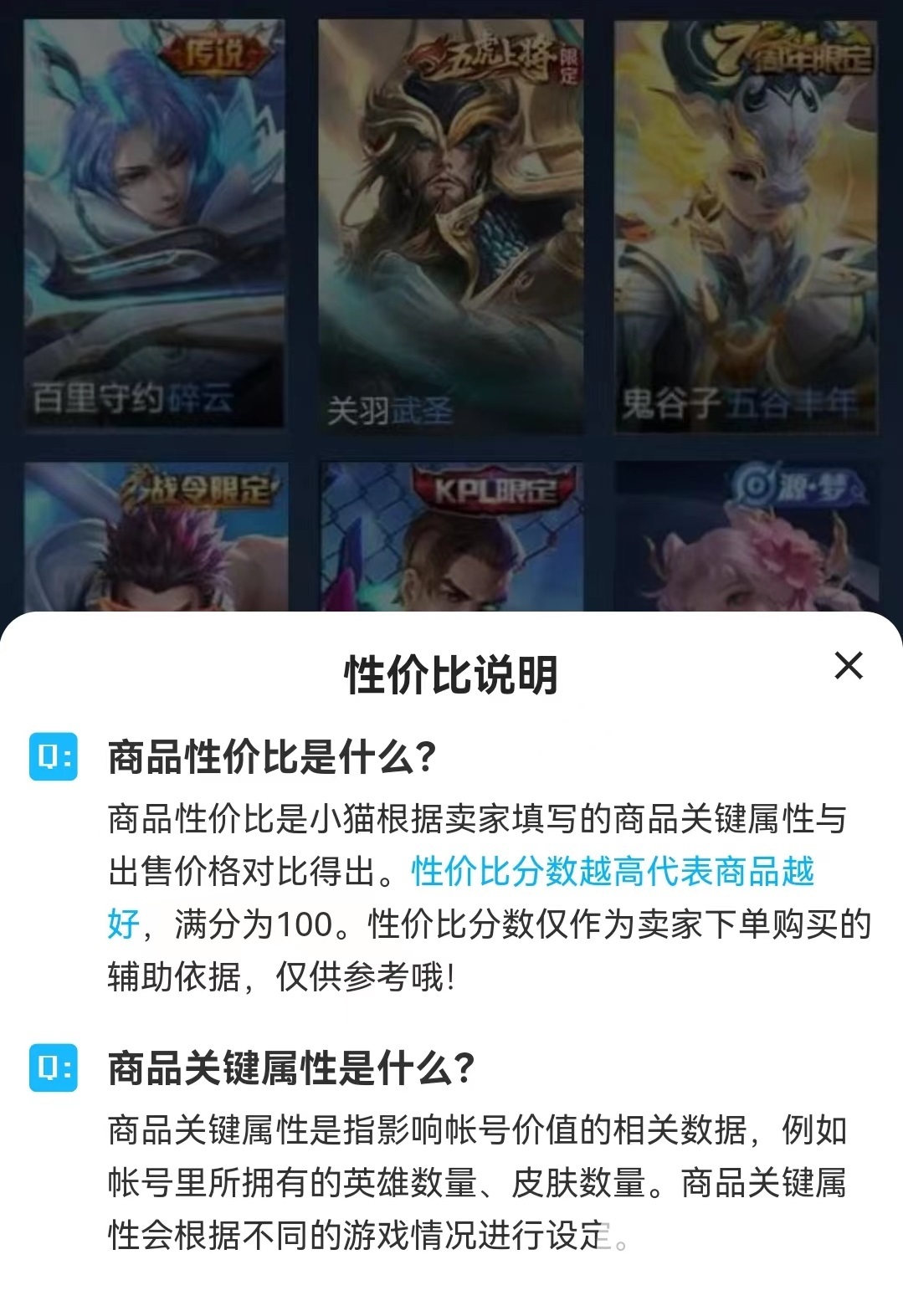 王者荣耀是一款非常公平的竞技游戏,玩家在战斗中主要依靠不同英雄技能以及出装和临场操作团队配合等赢得对战胜利。获得更好的视觉效果,为每一个英雄都推出了一系列皮肤,其中很多是绝版类型,只有特定的节日活动下才能获得,还有一些需要投入大量经济才能得到这些,在出售的时候都需要估算成价格,如果对这一方面不是很熟悉,小编推荐大家去交易猫游戏账号交易平台估价,这里估值非常准确,而且出售也很方便。