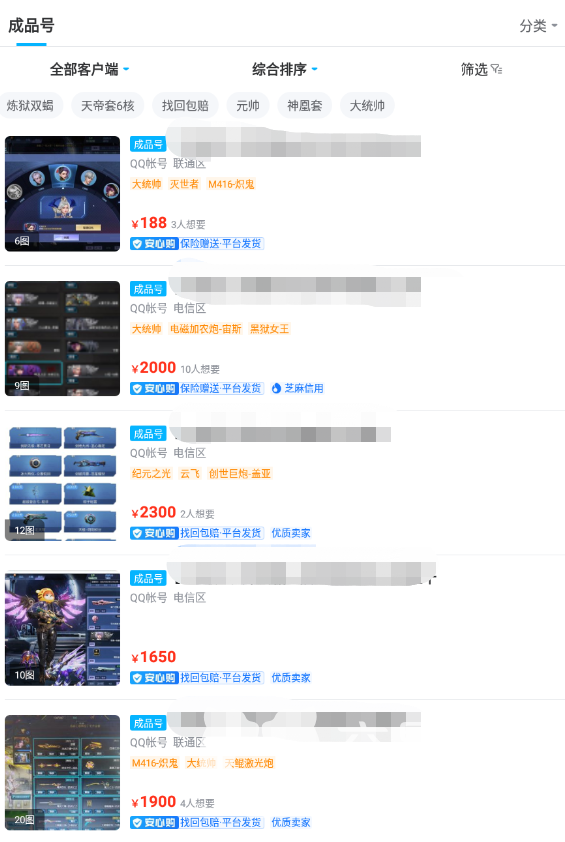 首先玩家登录交易猫平台,搜索“逆战”进入交易专区,就能一览所有在售账号,如果玩家需要买天启天帝套装,可以在搜索页内精准搜到。