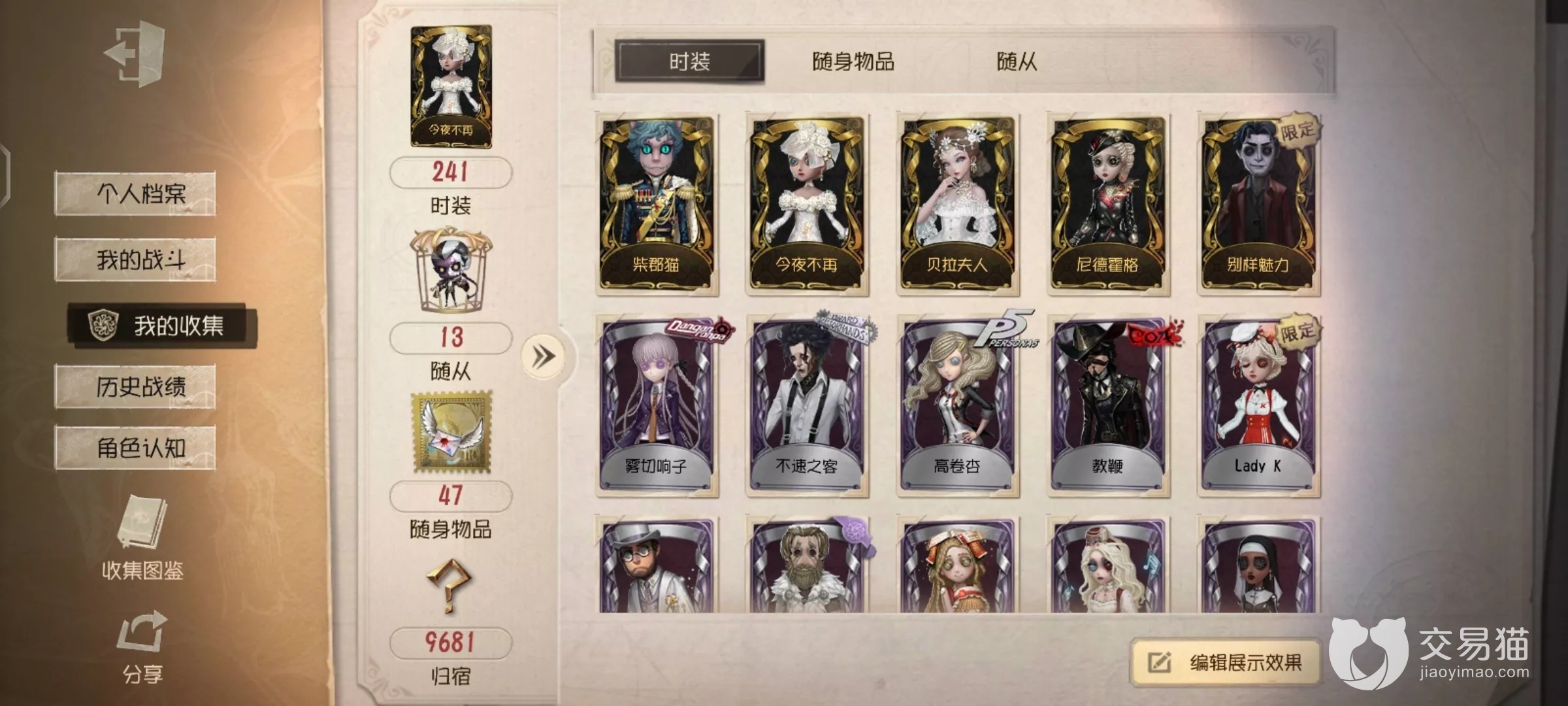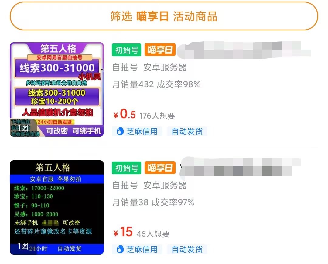 以上就是今天给大家带来的第五人格小号哪里买的所有相关内容,网易系列的其他热门手游也是一样的道理,只要是感觉游戏内皮肤或者时装需要大量氪金才能获取的,都能够在交易猫找到合适的平替低价捡漏账号,赶快点击上方链接下载试试吧。